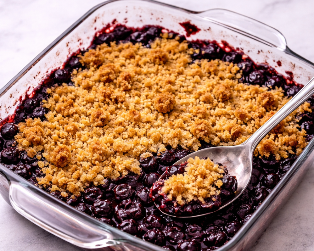 A warm, fruit-forward dessert with tender blueberries and a soft, golden topping. A touch of lemon balances the sweetness and enhances the natural flavor of the berries.